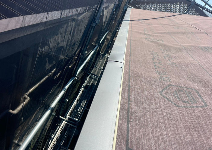 今回のように室内に雨漏りが発生していることから、全体的なルーフィングの劣化が考えられ、谷部分のみの部分修理では根本的な解決に至らない可能性があり、屋根全体の葺き替え工事をすることになりました。